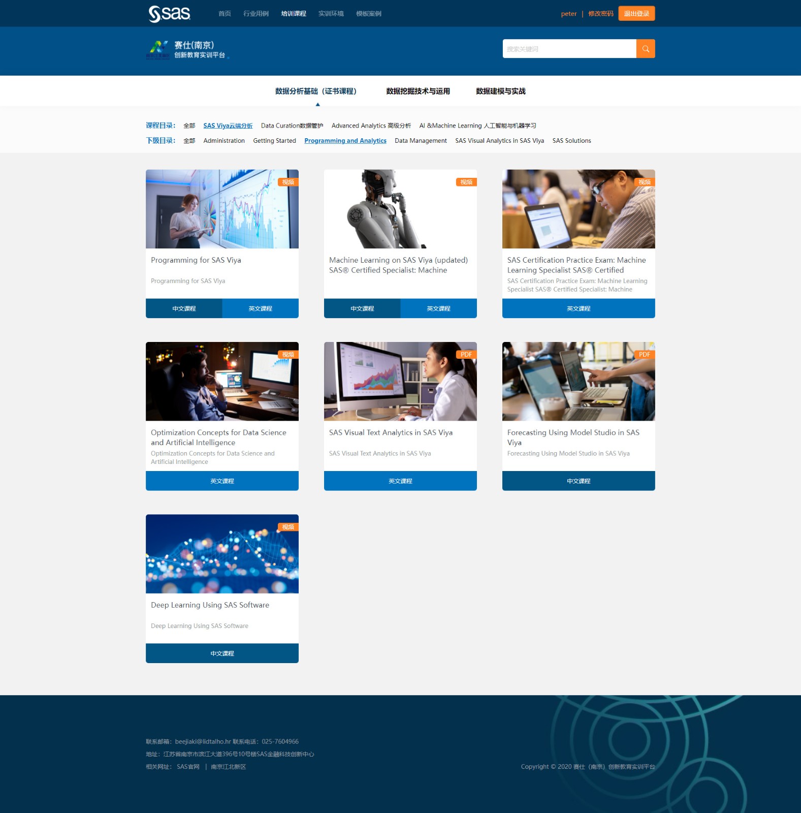 本平臺(tái)由我公司開發(fā)為賽仕獨(dú)家訂制,主要服務(wù)對(duì)象為SAS新用戶和即將采購SAS軟件的體驗(yàn)用戶,平臺(tái)與SAS的Viya系統(tǒng)對(duì)接,可在線通過視頻學(xué)習(xí)各種SAS軟件技能,還可以在線實(shí)操,體驗(yàn)軟件真實(shí)環(huán)境。